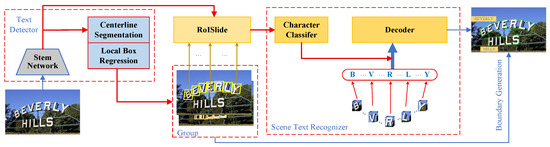 - Xu, Y.; Duan, J.; Kuang, Z.; Yue, X.; Sun, H.; Guan, Y.; Zhang, W. Geometry normalization networks for accurate scene text detection. In Proceedings of the 2019 IEEE/CVF International Conference on Computer Vision (ICCV), Seoul, Republic of Korea, 27 October–2 November 2019; pp. 9137–9146. [Google Scholar] [CrossRef]