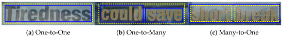 - Liu, Y.; Jin, L.; Xie, Z.; Luo, C.; Zhang, S.; Xie, L. Tightness-aware evaluation protocol for scene text detection. In Proceedings of the 2019 IEEE/CVF Conference on Computer Vision and Pattern Recognition (CVPR), Long Beach, CA, USA, 16–20 June 2019; pp. 9612–9620. [Google Scholar] [CrossRef]