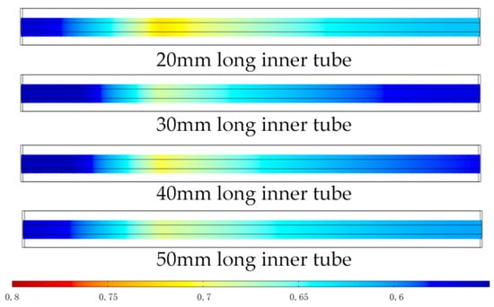 Figure 12 shows the hydrogen molar fraction distribution on the anode side for flange-type connector structures with different inner tube lengths.