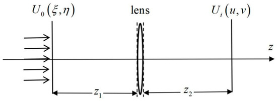 Following Professor Goodman’s research method [12], we define the spatial rectangular coordinate system O-xyz, with the z-axis coinciding with the optical axis. Figure 1 shows a schematic diagram of a single-lens imaging system illuminated by coherent light along the optical axis. Let the distance from the object plane to the first principal plane of the lens be z1 and the distance from the image plane to the second principal plane of the lens be z2.