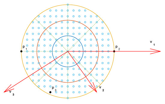 22], the optimal receiver configuration for three microphones placed on a planar circle with a 32 cm radius was determined using a brute-force approach. The goal was to maximize the diversity of the time delay distributions across different arrival angles, effectively minimizing the similarity between time delay profiles for different configurations. Due to the symmetric properties inherent to the time delay distribution relative to the AoA, multiple optimal configurations were identified. The receiver configuration used in this study is shown in