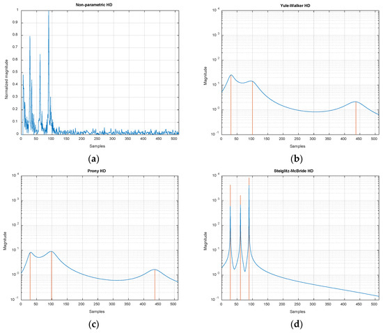 22], we utilize parametric HD techniques based on classical spectral estimation algorithms including Yule–Walker [