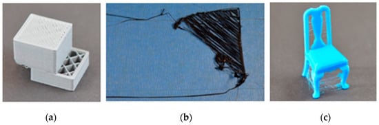 Examples of errors occurring during 3D printing: (a) Layer shifting (b) Adhesion to the surface (c) Stringing [39].