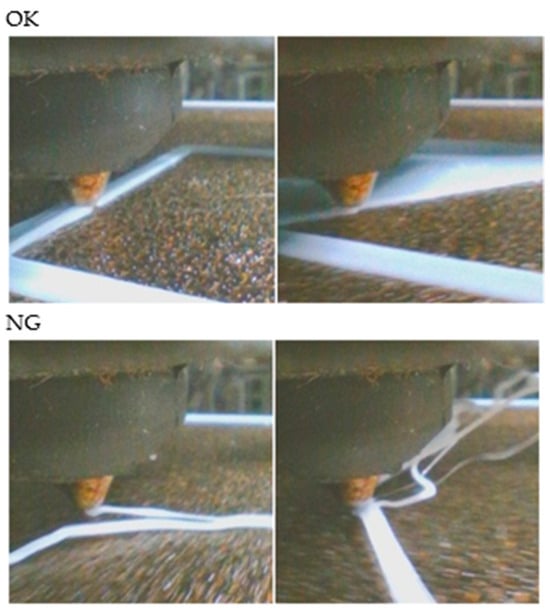 Images of good (OK) and bad (NG) samples (due to stringing).