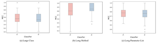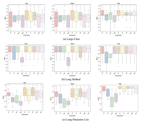 - Al-Shaaby, A.; Aljamaan, H.; Alshayeb, M. Bad smell detection using machine learning techniques: A systematic literature review. Arab. J. Sci. Eng. 2020, 45, 2341–2369. [Google Scholar] [CrossRef]