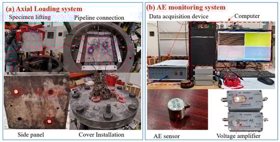To address this issue, acoustic emission (AE) monitoring technology has been used for fracture monitoring in hydraulic fracturing experiments. By tracking the formation process of the fracture network in three-dimensional dynamic through acoustic emission event points, the initiation and propagation processes of hydraulic fractures have been clarified to a certain extent [,]. CT tomographic technology has also been used in fracture morphology monitoring [,], which can obtain three-dimensional fracture distribution morphology with the help of three-dimensional reconstruction technology, but this technology is limited by sample size.