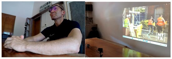 When conducting an eye-tracking study in the field of occupational health and safety in the analysis of safety on the construction site, stationary eye-tracking was used, which tracked the eye movements of the study participants in a controlled laboratory environment. This enabled the analysis of the perception of threats. Which visual elements (e.g., markings, barriers, warnings) attract the attention of the participants and how their eyesight is distributed in situations simulating construction conditions were checked. This enabled the identification of whether potentially dangerous areas are sufficiently noticeable. Another advantage of this approach was the possibility of assessing the perception of risk, consisting in understanding whether employees properly identify potential threats in the work environment, which is construction, and adapting training materials by introducing changes in their content and training structure to better meet the needs of users. This is related to the assessment of the effectiveness of training and procedures, which, as part of laboratory tests, can model emergency situations or present normal (correct) working conditions on the construction site. This allows checking how quickly and effectively the participants react to threats. Eye tracking data analysis allows us to assess whether the procedures and warning systems used are sufficiently intuitive and whether the workers’ eyesight is directed to critical elements. Studies were conducted (Figure 3), using film and photo material, covering correct patterns of conducting construction works.