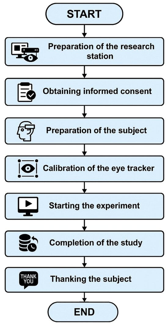 Eye tracking research requires precise planning of the procedure to ensure high quality and reliability of the data obtained. A detailed description of the research procedure included the following stages: