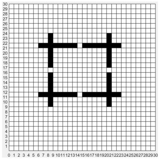 The A* algorithm is a widely adopted path planning method in robotics, known for its ability to evaluate path costs on grid-based maps. In this representation, black cells denote obstacles, while white cells indicate traversable space. An example of this grid-based environment is shown in Figure 2.