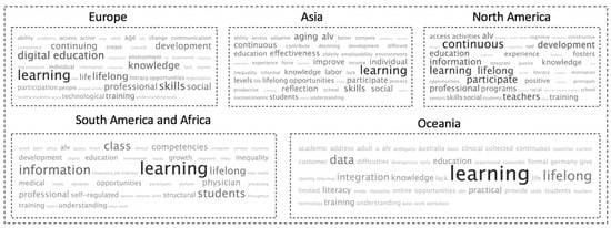 South American and African researchers, on the other hand, highlight social inclusion and the mitigation of inequalities more prominently in their discussions of LLL. This emphasis likely stems from the pressing socioeconomic disparities present in many countries within these continents. Lastly, Oceanian researchers distinguish themselves by placing a greater emphasis on experiential and problem-based learning approaches, potentially reflecting a cultural preference for practical, hands-on education.