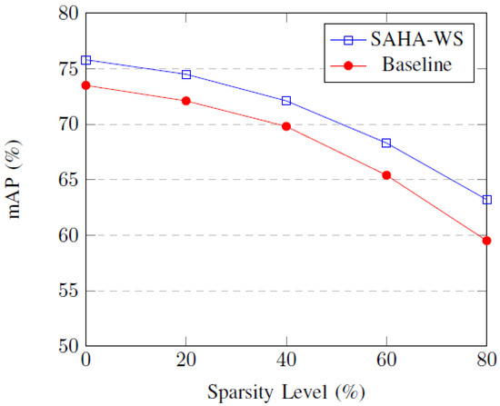 Figure 5 presents mAP on COCO, with SAHA-WS at 68.3 ± 1.2% vs. 65.4 ± 1.5% for the baseline at 60% sparsity (p < 0.05). SAHA-WS’s sparsity exploitation [15] ensures robust object detection performance [26].