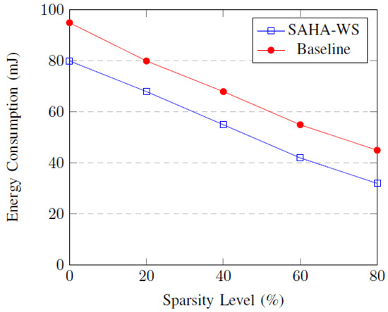 Figure 8 shows energy consumption, with SAHA-WS at 42 ± 1.5 mJ vs. 55 ± 1.8 mJ for the baseline at 60% sparsity. Power profiling (Monsoon Power Monitor) reveals SAHAWS’s average draw of 1.2 W vs. 1.5 W for the baseline, confirming 25% energy savings [14,17].