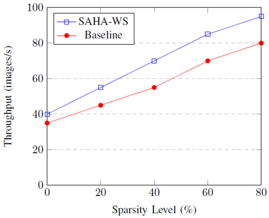 Figure 9 shows throughput, with SAHA-WS at 85 ± 2.0 images/s vs. 70 ± 2.3 for the baseline at 60% sparsity. Reduced computations enhance processing capacity by 20%, supporting real-time AR [5,9].