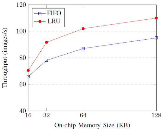 The measures used to select the optimal configuration (e.g., DF-5 with 64 KB LRU cache) are the resulting performance metrics presented in Table 3 and Figure 14, Figure 15 and Figure 16. For instance, the DF-5 configuration is considered optimal for high-performance scenarios because it delivers the lowest latency (9.8 ms) and highest throughput (102.0 images/s) while maintaining low energy consumption (43.1 mJ).