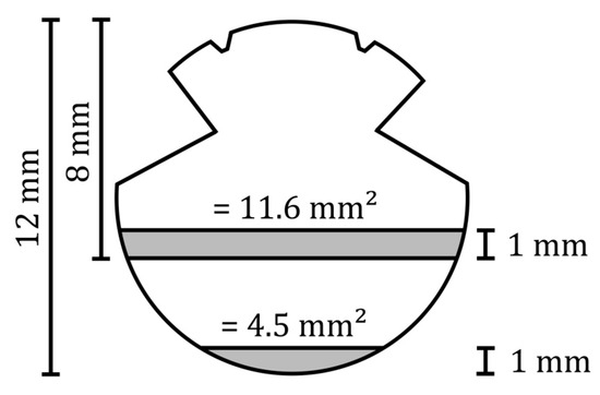 According to Archard [56], the removed material due to wear is proportional to the work applied by friction forces. This means that with the same frictional force, a fixed volume of debris will be removed. As can be seen in Equation (1), the contact area is not relevant for the worn volume.