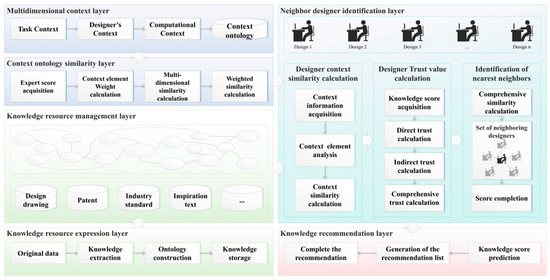 A product-form design knowledge recommendation framework integrating crowd-intelligence context similarity and trust relationships.