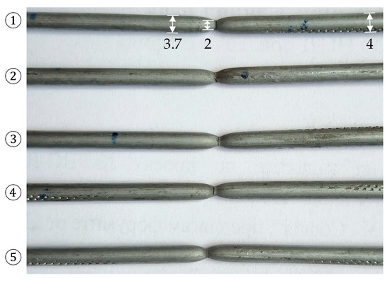 The obtained results do not allow a definitive answer to the question of which pitch value corresponds to the formation of a tight spiral. From a practical point of view, this boundary is to some extent subjective. The experimental study showed that there is no clear transition in either the observed deformation patterns or in the applied torque that could serve as a reliable criterion. Nevertheless, the stress analysis from the numerical study allows the twist pitches to be grouped into three categories: large, intermediate, and small, but no exact boundaries can be defined between them. The influence of pitch is most clearly assessable in the residual stress diagrams shown in