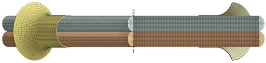 The numerical and experimental results presented in this study provide a comprehensive view of the stresses and deformations arising in a pair of twisted steel wires. The finite element model, validated through torque–pitch measurements, proved capable of accurately reproducing the physical behavior observed during twisting.