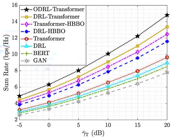 We also compared them against standalone Transformer and standard DRL models to establish baseline performance. The Transformer model was trained using a supervised learning approach lacking decision-based feedback and thus served as a lower-bound reference in environments with delayed rewards. The DRL baseline uses conventional deep networks without sequence modeling, providing insight into the advantages introduced by the attention-based encoder in our proposed method. To further contextualize our results, we included bidirectional encoder representations from transformers (BERT)- and generative adversarial network (GAN)-based models. BERT, a pretrained attention-based model, was selected due to its proven sequence modeling capability, while the GAN was included as a generative approach capable of learning the underlying data distribution. Finally, to evaluate the standalone effectiveness of HBBO, we applied it independently to the DRL and Transformer architectures and their combinations. These experiments demonstrate HBBO’s ability to improve the learning stability, convergence rate, and final policy quality across architectures. This modular evaluation confirms that HBBO not only benefits the joint ODRL-Transformer pipeline but also serves as a robust meta-optimizer across different learning strategies. Together, this broad evaluation design enabled us to validate the superiority and generalizability of the proposed ODRL-Transformer framework in RIS-assisted THz environments.