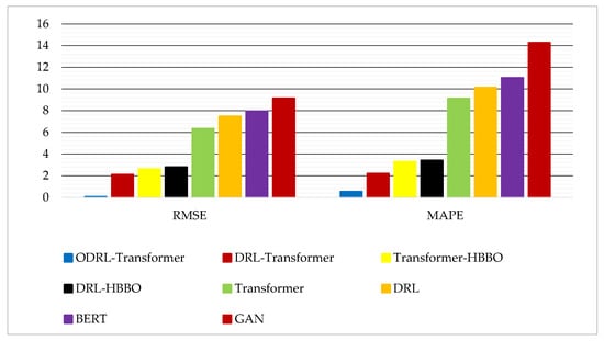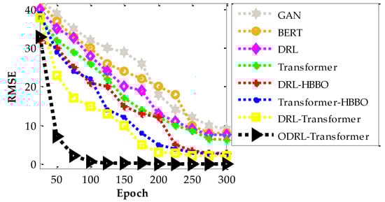 Table 5 presents the total execution times of all evaluated models when trained for a fixed budget of 300 epochs, allowing a direct comparison of computational costs under identical termination conditions. This complements the convergence-time analysis in Table 4, which measured the runtimes to reach predefined RMSE thresholds. Unlike Table 4, where runtime differences were influenced by each model’s convergence rate, Table 5 isolates the inherent computational overhead of each architecture, including the cost introduced by the HBBO meta-optimizer. From Table 5, it is clear that the HBBO-based models (Transformer-HBBO and DRL-HBBO) required moderately higher execution times than their non-HBBO counterparts (Transformer and DRL) due to the additional optimization layer in the early training stages. However, this overhead remained within a feasible range (approximately 25–30% relative to the corresponding baseline models).