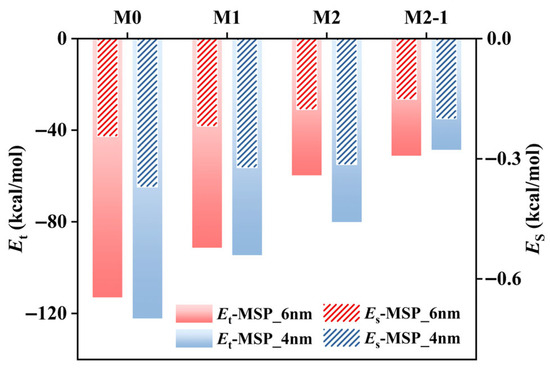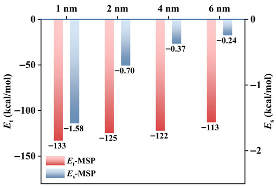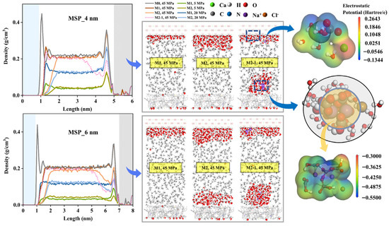 - In organic–inorganic composite slit pores (MSPs), formation water readily forms films on calcite and clusters on kerogen, weakening CH4 adsorption and its interaction with the pore walls. For methane diffusion, 2 nm and 4 nm MSPs may exhibit a promoting trend under low moisture water conditions but show inhibition with increasing moisture content or the introduction of ions. In contrast, 6 nm pores exhibit inhibition under water-containing conditions. Ions further enhance cluster formation, significantly hindering gas diffusion.