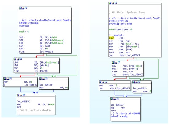 As a core component of software, binary code plays an important role in software security. In actual application scenarios, software usually exists in the form of binary code and its source code cannot be obtained. Therefore, binary code analysis has become one of the key means to ensure software security. At the same time, with the successful application of machine learning and deep learning technologies in computer vision, natural language processing, data mining, recommendation systems and other fields, researchers have begun to apply machine learning methods to binary code similarity analysis [6]. However, a large amount of semantic information will be lost in the process of compiling source code into binary code, including function names, variable names and defined data structures [7], making binary code analysis more difficult. In addition, the same source code may generate completely different binary codes under compilation options such as different platforms and different instruction architectures. From a technical perspective, binary code similarity detection not only needs to solve the problem of code syntax structure matching, but also needs to consider the equivalence of instruction function semantics, which further brings huge challenges to binary code similarity detection and homology analysis. Figure 1 shows the difference in binary code generated by GNU (GNU’s Not Unix) functions under different CPU instruction set architectures.