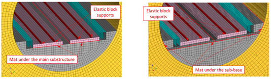 - Variant 2: block supports with a vibration isolation mat placed directly under the main track substructure (track slab);