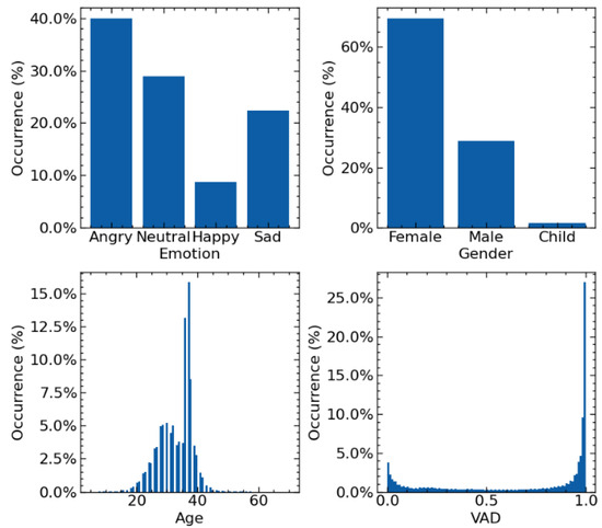 Distribution of audio-based control parameters: age, voice activity, emotion, and gender controls across the entire dataset.