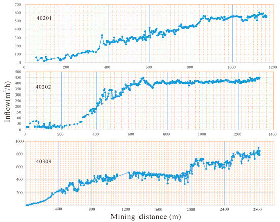 Key attributes and measured water inflow data for these working faces are summarized in Table 2 and Figure 6.