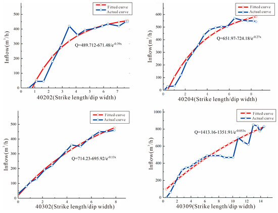 The fitting results between the predicted values from the hydrogeological analogy method and the measured water inflow data are illustrated in the accompanying figure (as shown in Figure 9).