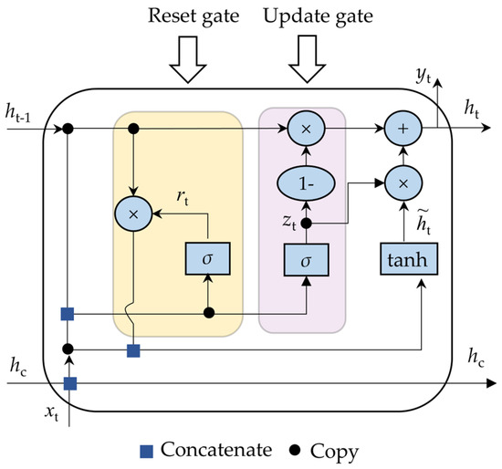 where h t represents the new hidden state. It can be seen that the update gate regulates the amount of new information that is stored in the hidden state, and also determines the degree to which the historical information should be retained or discarded.