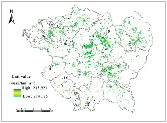 : Total equivalent of ecological service value for paddy field (yuan/hm2·a−1).