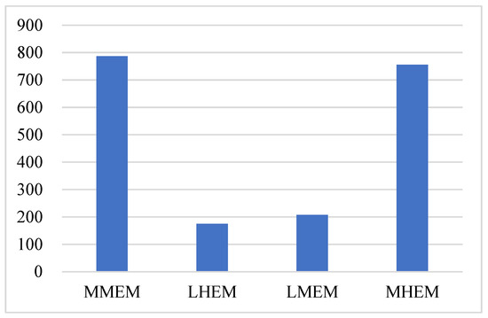 In practice, due to the influence of slope, cultivated land with a steeper gradient is often unfavorable for cultivation. On the one hand, it is not conducive to the widespread application of mechanized farming, and on the other hand, it may exacerbate ecological issues such as soil erosion. Therefore, slope is often considered the primary condition by the government when developing and utilizing cultivated land. In the process of evaluating the quality of garden land and cultivated land, the “slope” indicator has been used. In the calculation of land-use conversion costs, different slope coefficients have also been assigned based on different slopes. Therefore, to highlight the advantages of contrasting the economic priority scenario and the ecological priority scenario, this study selects the slope as the primary reference factor under general conditions [21], to simply simulate the government’s tendency to choose cultivated land optimization and adjustment zones in typical situations. On this basis, according to the quality grades of orchard land and cultivated land, the scenarios are divided into four types: ① Conversion of medium and low-grade orchard land to medium and high-grade cultivated land, abbreviated as MM (medium-medium); ② Conversion of low-grade orchard land to high-grade cultivated land, abbreviated as LH (lower-high); ③ Conversion of low-grade orchard land to medium and high-grade cultivated land, abbreviated as LM (lower-medium); ④ Conversion of medium and low-grade orchard land to high-grade cultivated land, abbreviated as MH (medium-high).