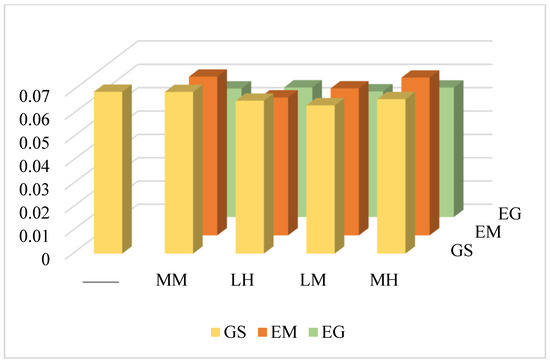 In both the economic priority scenario and ecological priority scenario, all results outperform those in the general scenario, indicating that the model application facilitates more efficient identification of optimization and adjustment zones. Regarding ecological loss, the GS and MMGS scenarios exhibit the highest unit ecological loss, each measuring 0.069 (Figure 18). Unit ecological loss in the economic priority scenario is slightly lower than in the general scenario overall, yet 0.004–0.013 higher than in the ecological priority scenario, indicating significant differences. Concerning economic loss, the LHEG scenario presents the highest unit economic loss, reaching 0.153 (Figure 19). Unit economic loss in the ecological priority scenario is substantially higher than in other scenarios, averaging over ten times that in the economic priority scenario and seven times that in the general scenario, demonstrating highly significant differences.