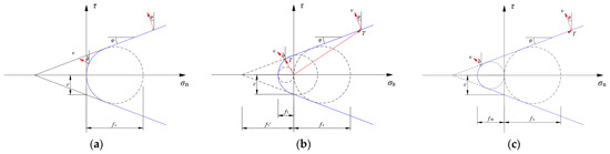 Figure 1c shows what happens when the minimum tensile strength is reduced. Parameters fc and fm are determined based on the Mohr–Coulomb strength criterion: