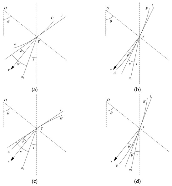 The anisotropy of cohesion is shown in Figure 3, where k is the anisotropic coefficient. The angle between the first principal stress and the vertical direction is denoted by the letter i. The angle between the first principal stress and the failure plane is denoted by the letter ψ, with a value of 35° [38]. The expression for cohesion is shown below: