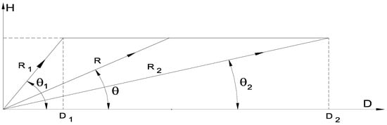These characteristics can be obtained using geometric optics methods by calculating the curvature of the reflecting surface in the vertical plane. In several studies [,,,], experimentally determined modified directive characteristics have been used for airborne radars