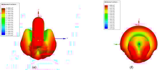 In the second stage of the analysis, using the DIAGCCOS.PAS program, the angle is modified to the value of 60° to highlight the effect on the elevation directivity characteristic in correlation with the same values of the angle from the first stage. The simulation results of the second stage are presented in Figure 13, Figure 14, Figure 15, Figure 16, Figure 17, Figure 18, Figure 19, Figure 20 and Figure 21.
