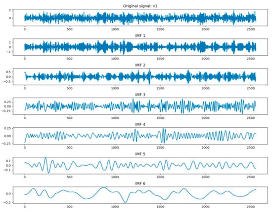 For illustrative purposes, the EMD results for the Bearing 1_1 signal from the PHM2012 dataset are presented in Figure 11.