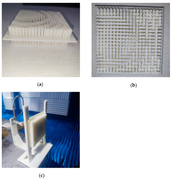 - Dicandia, F.A.; Genovesi, S. Low profile dielectric transmitarray based on additive manufacturing technology. In Proceedings of the 2023 IEEE Conference on Antenna Measurements and Applications (CAMA), Genoa, Italy, 15–17 November 2023; IEEE: New York, NY, USA, 2023; pp. 804–807. [Google Scholar]