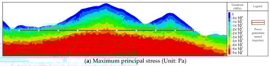 Stress values at the measuring points were input in the optimized LSTM–Attention neural network algorithm, and the output reflects the distribution results of the actual stress field. The acceleration due to gravity was set to 9.732 ms−2. The optimal parameters were substituted into the LSTM–Attention neural network model to determine the distribution of the regional stress field as per Equation (9).