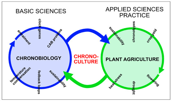 The aim of this work is to contribute to the scientific discussion on the need for information exchange between chronobiologists and agronomists in order to promote interdisciplinary collaboration moving towards improved crop yield and health [11]. It proposes a systematic review and conceptual solutions that do not require funding or technical tools, rather taking into account rhythms in a broad sense in the approaches of chronobiologist and agronomists, drawing attention to current socio-economic challenges.