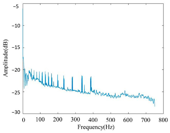 After loading the data from the website, the spectrum was estimated by subtracting the mean value from the signals received by the 5th array element. Figure 12 shows an example of a spectrum signal in the experimental data. The obtained spectrum is basically consistent with that given on the website.