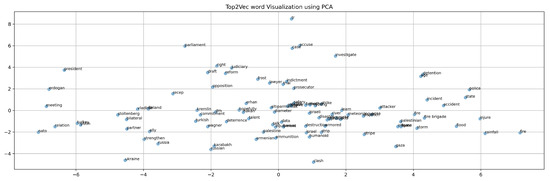 33]. Unlike traditional methods that rely on keyword extraction or statistical analysis, Top2Vec leverages its understanding of semantic relationships between words to uncover latent topics within news articles. This allows it to not only identify key themes but also differentiate between positive, negative, or neutral sentiment within the news content. This empowers researchers to design algorithms that can autonomously summarize the insights of news feeds by extracting prominent topics. Essentially, Top2Vec offers a powerful tool for sifting through the vast amount of news data and extracting valuable insights that would be difficult or time-consuming to obtain through manual methods [