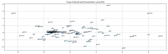 Figure 15 shows the heatmap of topic projections. While it also shows two clusters, the density distribution is noteworthy. One of the centroids appears to be located in a very dense central region, while the other may be associated with a less dense, more diffuse, or possibly more isolated region. FLSA-W also resulted in two silhouette-optimized k-means clusters.