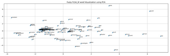 We applied a qualitative analysis to explore the meaning of topic modeling before generating knowledge graphs. Topic clustering via dimensional reduction involves transforming high-dimensional textual data (like documents or keywords) into a lower-dimensional space using Principal Component Analysis (PCA), preserving meaningful relationships. This enables efficient grouping of semantically similar topics, improving organization, search, and content recommendation. In order to obtain an initial understanding of topic distributions and the degree of separation among the models, we conducted a PCA to project the high-dimensional topic-document matrices into a two-dimensional space. The topic scores generated by FLSA-W, LDA, BERTopic, and Top2Vec were each subjected to PCA independently. This dimensionality reduction enables visual comparison of how topics are spatially distributed across documents and helps to identify latent structure, overlap, or clustering tendencies inherent in each modeling approach. The 2D projections facilitate interpretability while preserving as much of the original variance as possible in the reduced space [