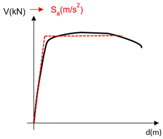 Figure 10b shows the result of the pushover analysis for both directions. These capacity curves need to be idealised to match the corresponding single-degree-of-freedom (SDOF) system, so that they can be subsequently used in the N2 method’s steps.