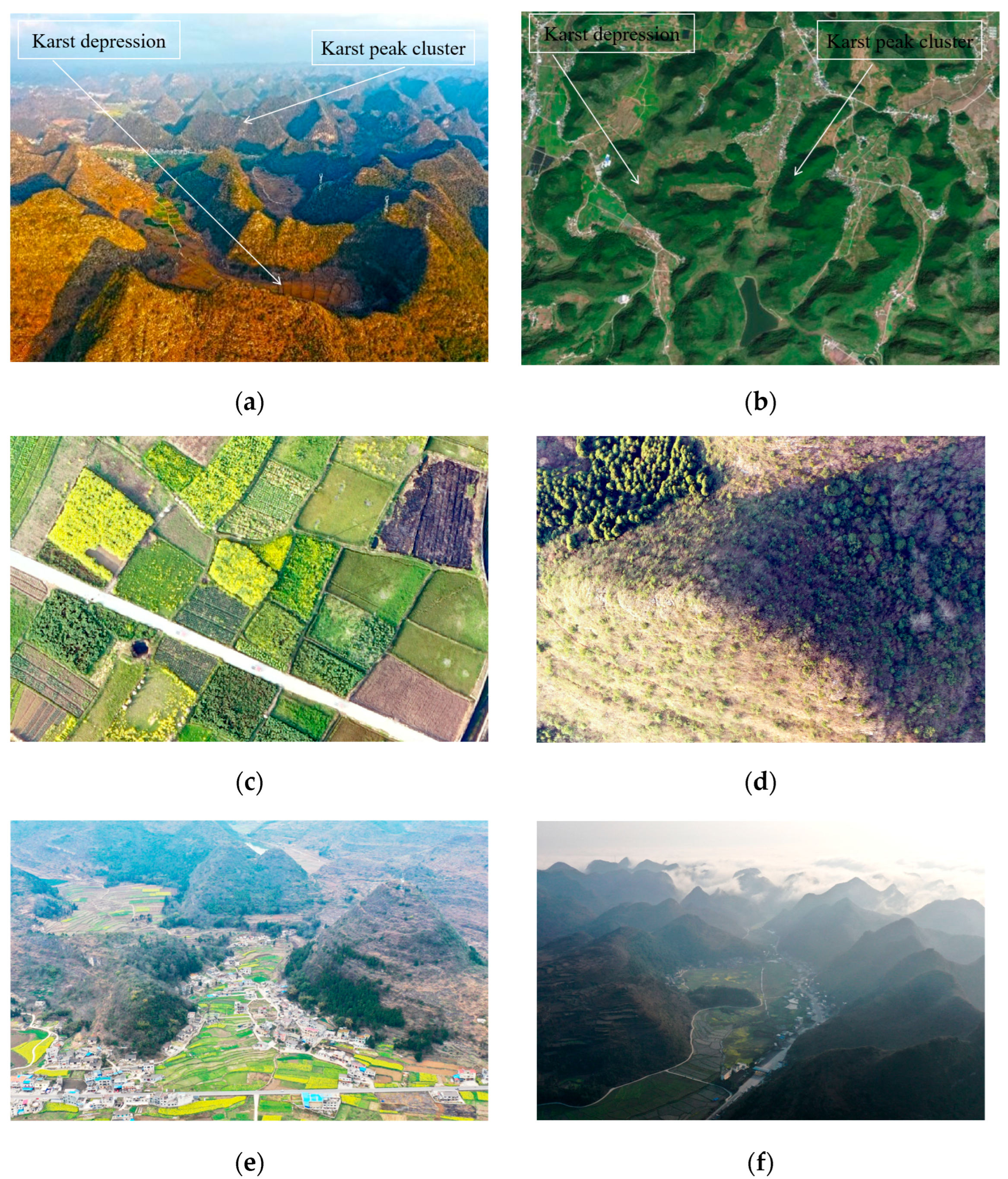 - Wang, K.; Zhang, C.; Chen, H.; Yue, Y.; Zhang, W.; Zhang, M.; Qi, X.; Fu, Z. Karst landscapes of China: Patterns, ecosystem processes and services. Landsc. Ecol. 2019, 34, 2743–2763. [Google Scholar] [CrossRef]