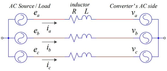 Figure 1 defines the phase variables: the three-phase grid (or source/load) voltages ; the line currents ; and the converter phase voltages at the AC terminals of the VSC.
