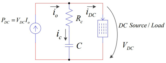 The DC bus is modeled by a link capacitor with equivalent series resistance (ESR). The converter output current is , the load current is , and the capacitor current is indicated polarities in Figure 4.